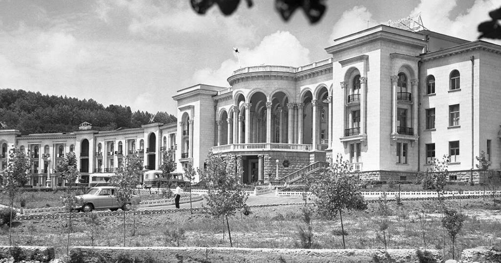 L’homme de fer s’est rendu à Tskaltubo pour la deuxième fois en 1951, accompagné de Lavrenti Beria. Il disposait de quartiers privés dans au moins un sanatorium, celui du ministère de la Défense de l’Union soviétique (aujourd’hui Tskaltubo Spa Resort), de sa propre salle de bains à l’établissement de bains n° 6, et même d’une maison d’été sur une colline voisine.